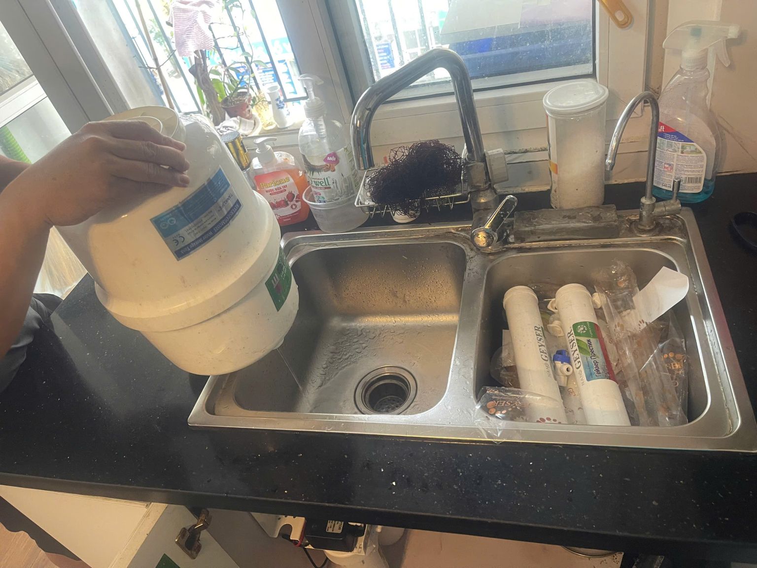 Cách khắc phục: Cách sửa máy lọc nước bị tắc trong trường hợp này đó là bạn sử dụng bơm xe đạp để bơm khí vào bình để đẩy nước ra ngoài. Khi thấy nước chảy hết thì hãy ngừng bơm.