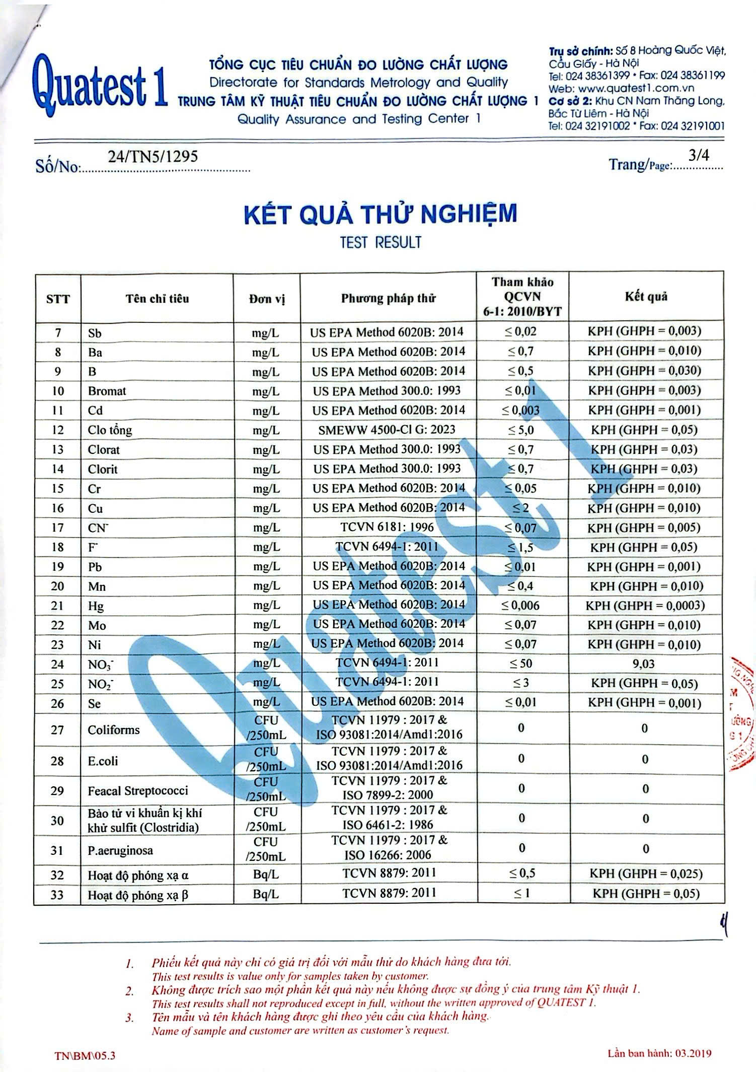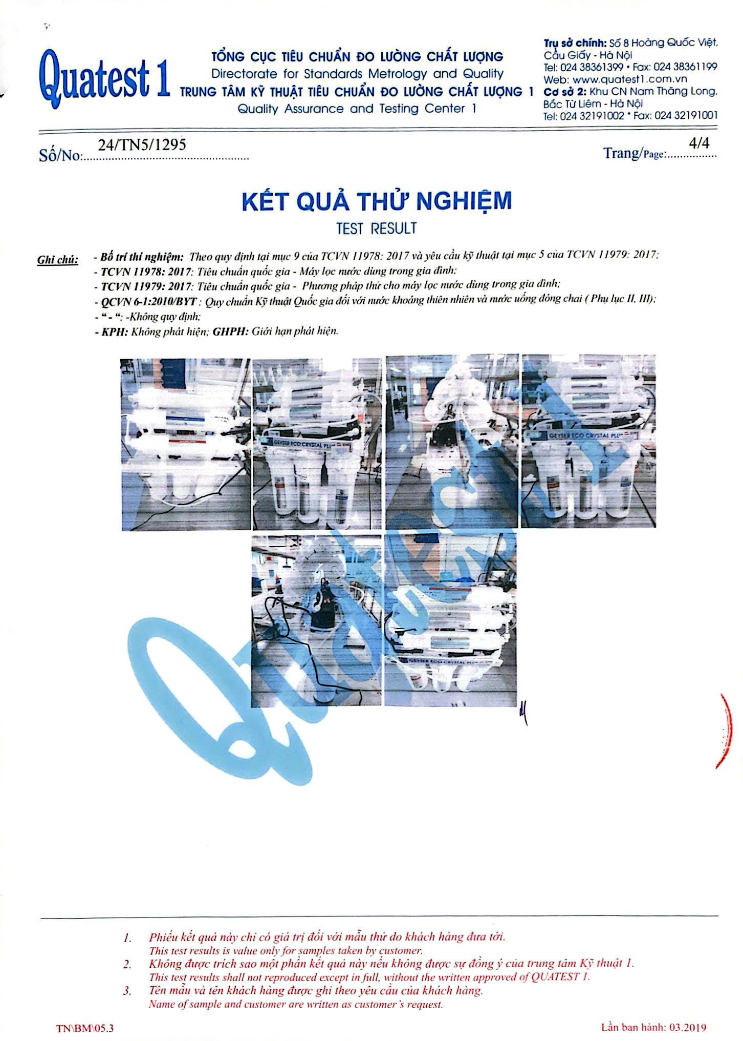 KẾT QUẢ THỬ NGHIỆM LỌC QUA CÔNG NGHỆ DISRUPTOR - NANO GEYSER