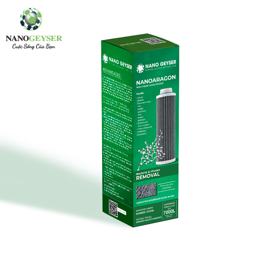 Lõi lọc NanoARAGON - Nano Geyser là thành quả của công trình nghiên cứu vật liệu lọc của công ty Argonide USA - sản phẩm được tài trợ nghiên cứu bởi NASA(Cơ quan hàng không vũ trụ Mỹ) nhằm mục đích phát triển bộ lọc nước trên các con tàu vũ trụ của Nasa.