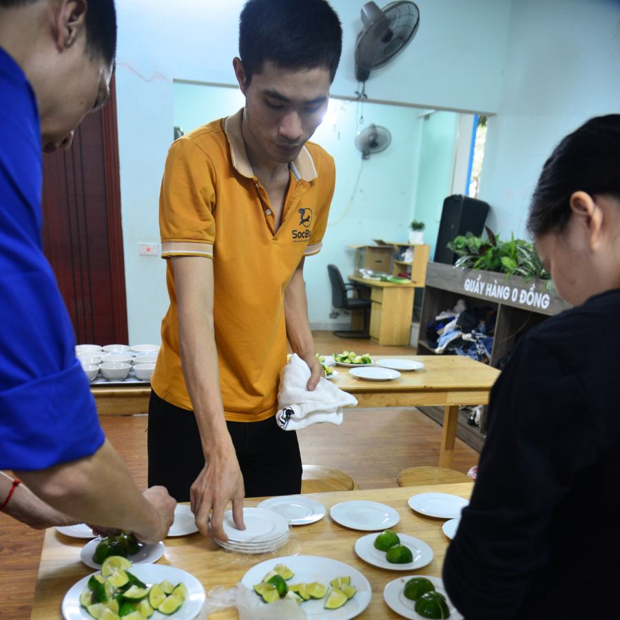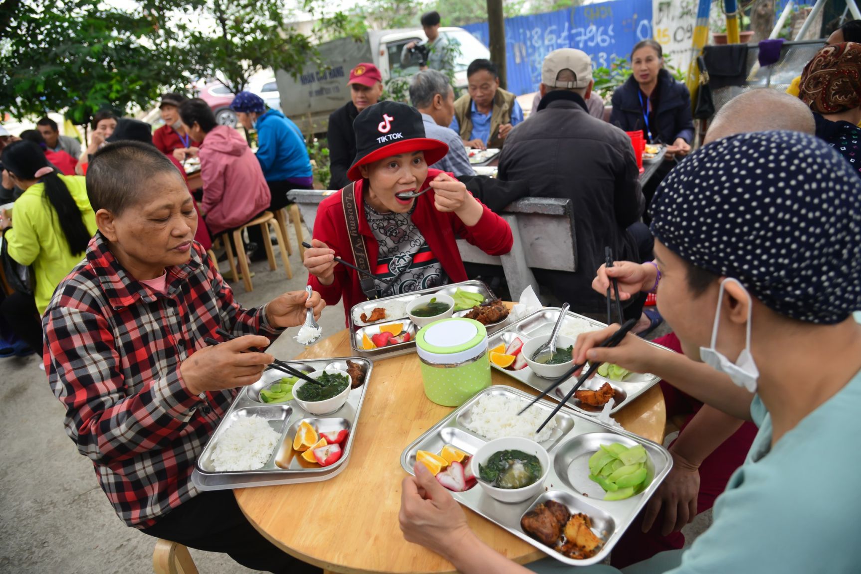 Nhân viên Nano Geyser cùng đoàn chuẩn bị những suất ăn 2K cho các bệnh nhân tại bệnh viện K Tân Triều