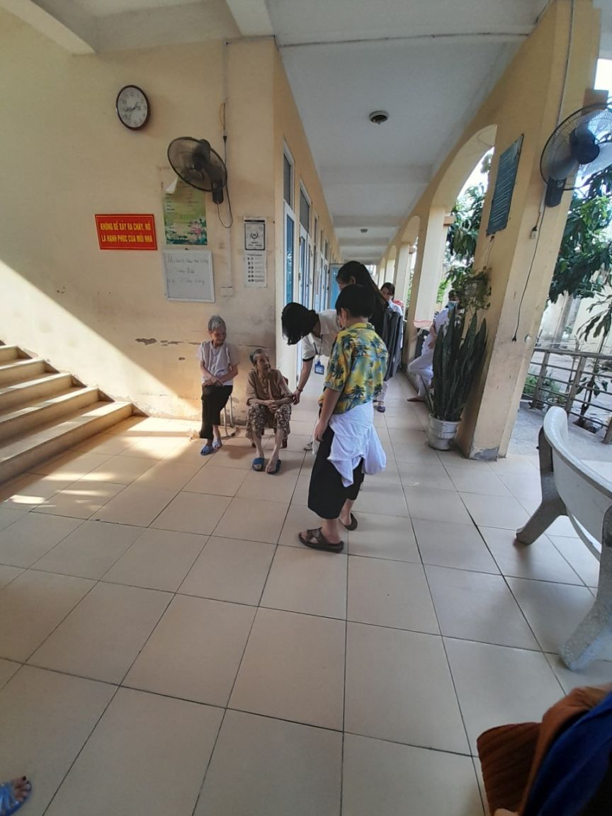 Ở đây chúng tôi còn được chứng kiến những hình ảnh vô cùng đẹp: Hình ảnh các mẹ nuôi cùng các con vui chơi, các điều dưỡng ân cần chăm sóc các cụ già trong trung tâm lo từng miếng ăn, giấc ngủ cho các cụ.