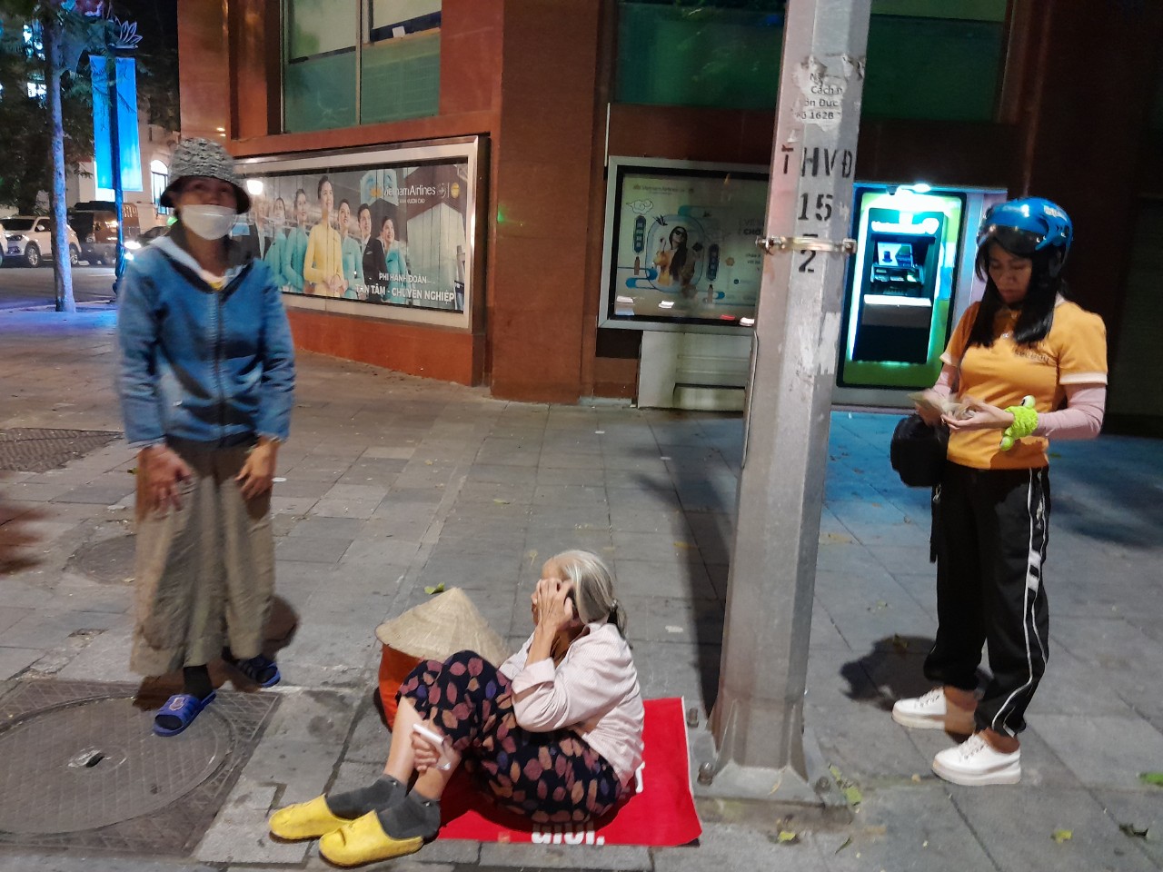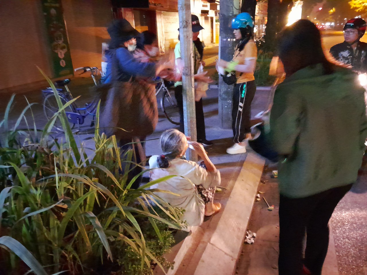 Thăm hỏi cụ bà vô gia cư trên đầu đường Tràng Thi