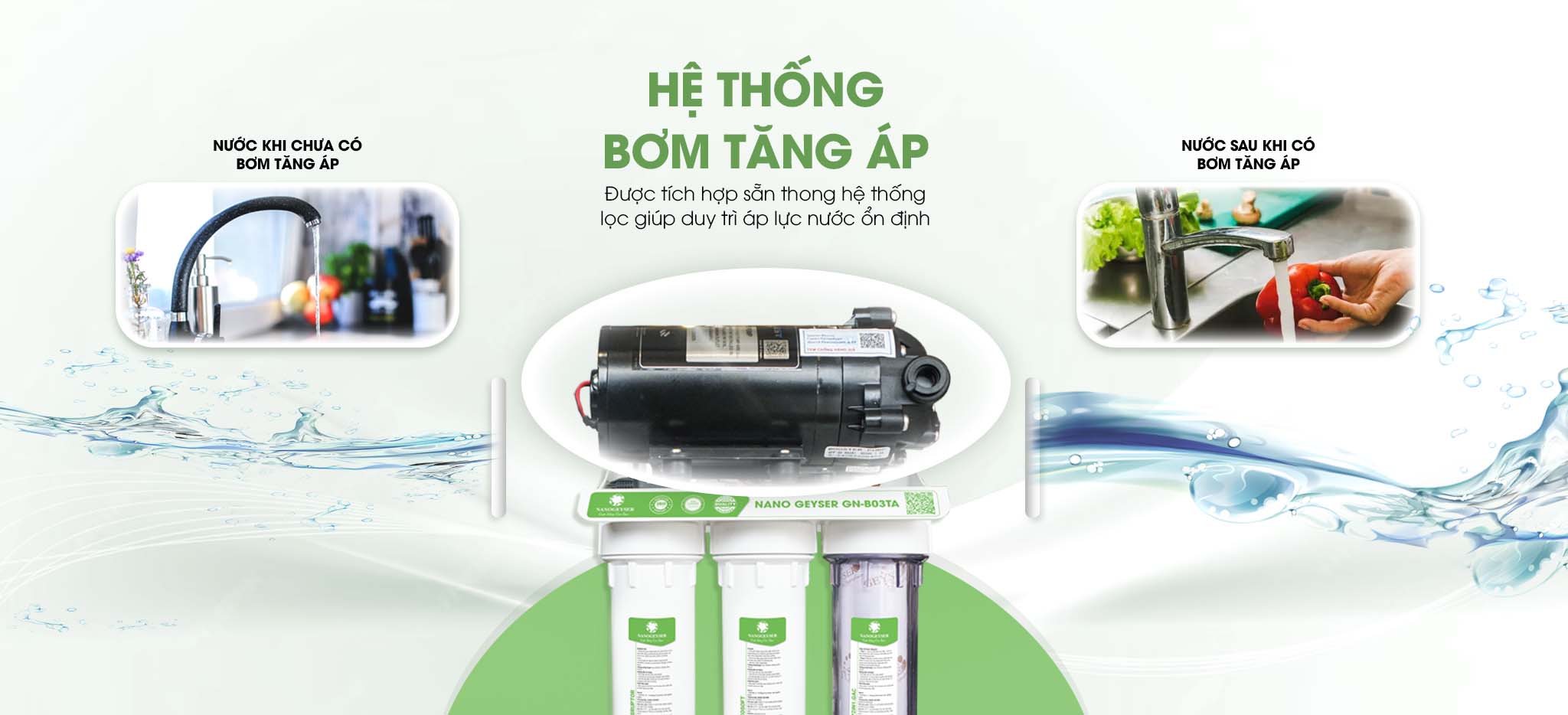 Khi áp lực nước được duy trì ổn định, dòng nước đi qua các lõi lọc Nano với tốc độ và áp suất phù hợp, giúp nâng cao hiệu suất lọc, tăng tuổi thọ lõi lọc, và mang lại nguồn nước tinh khiết, an toàn cho sức khỏe.