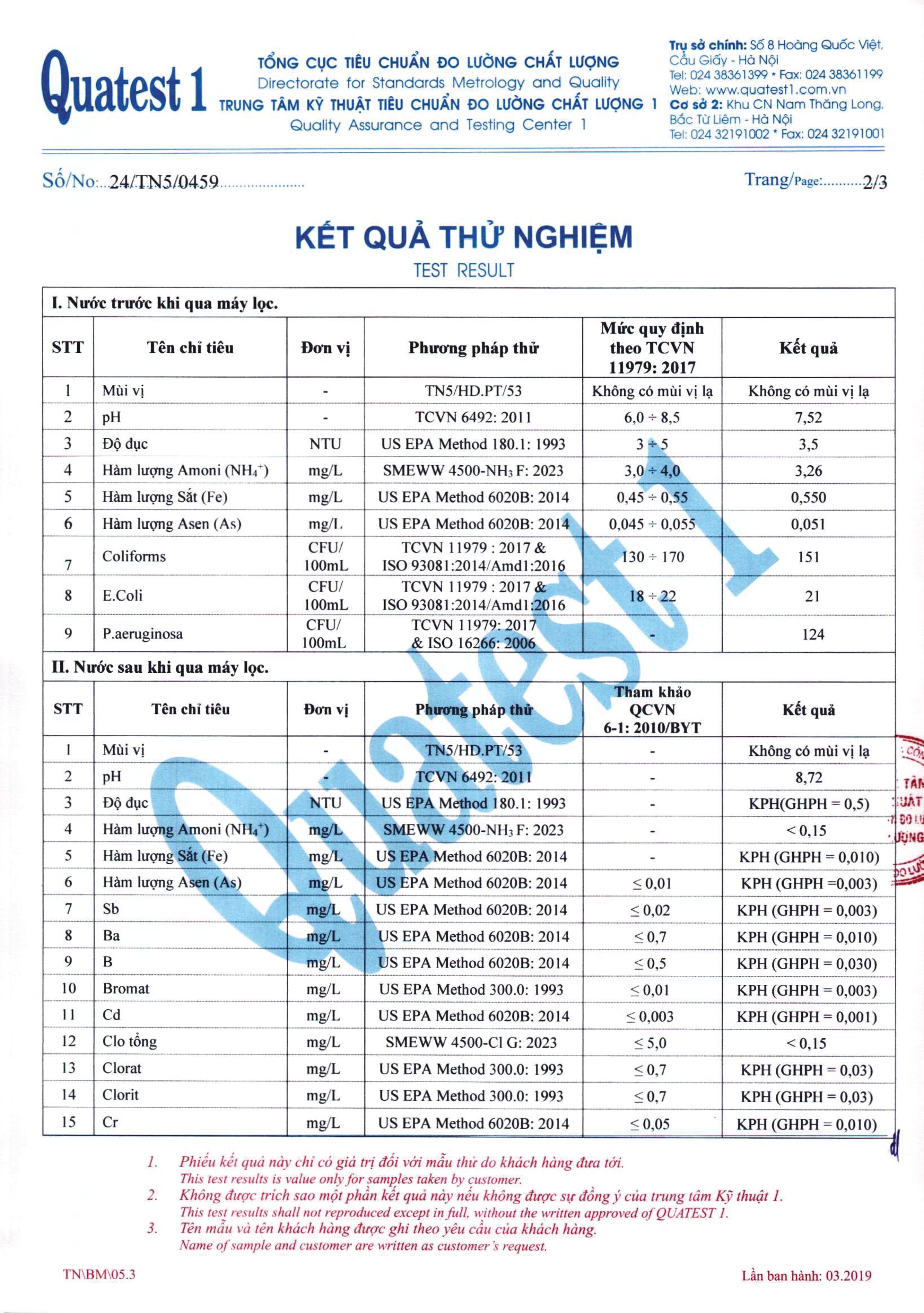 KẾT QUẢ THỬ NGHIỆM LỌC CÔNG NGHỆ DISRUPTOR - NANO GEYSER