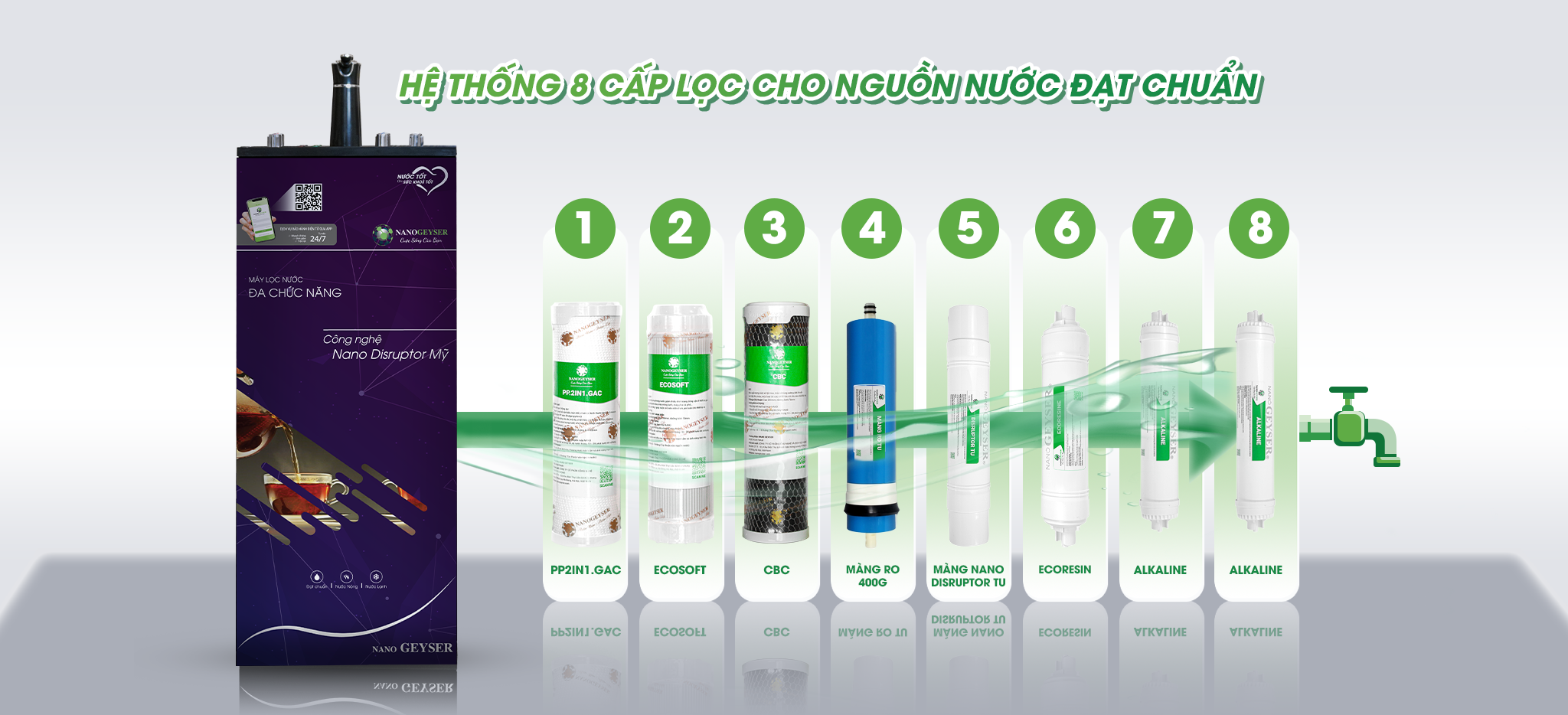 CÔNG NGHỆ LỌC KÉP NANO DISRUPTOR - RO VÀ HỆ THỐNG 8 CẤP LỌC CHI TIẾT