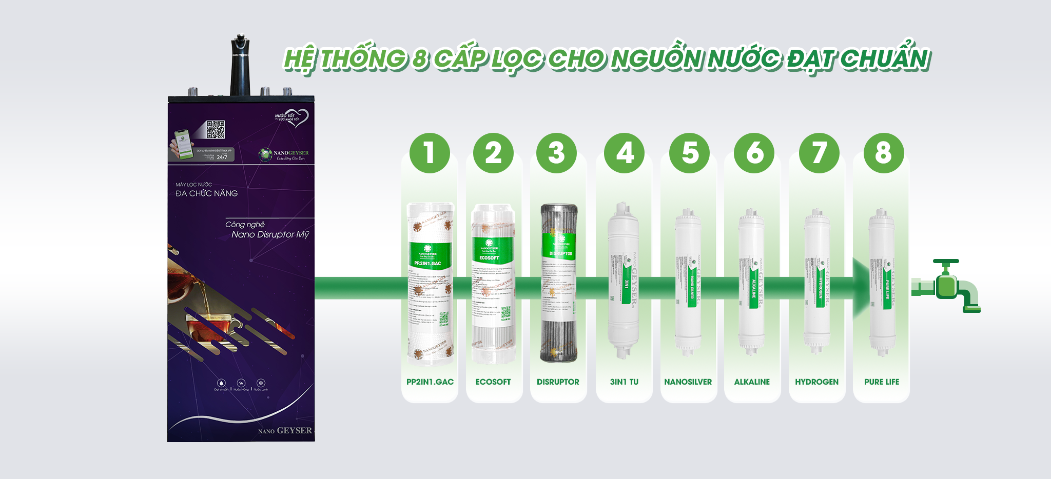 HỆ THỐNG LỌC 8 CẤP MẠNH MẼ - NÂNG TẦM CHẤT LƯỢNG NƯỚC UỐNG