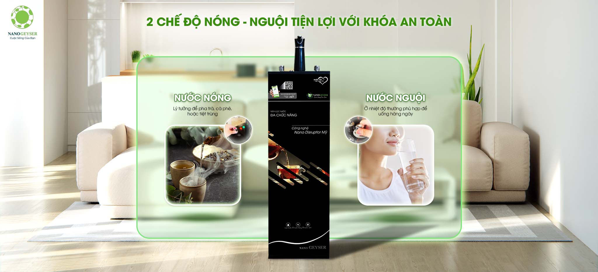 Máy lọc nước nóng nguội Nano Geyser GR-K25DS là một giải pháp thiết yếu cho cuộc sống hiện đại, mang đến sự tiện nghi và an toàn cho mọi gia đình. Với thiết kế tủ đứng nhỏ gọn, sản phẩm không chỉ cung cấp nguồn nước sạch mà còn là điểm nhấn thẩm mỹ cho không gian sống của bạn. Đặc biệt, máy tích hợp hai chế độ Nóng - Nguội và tính năng khóa vòi nóng, đảm bảo sự an toàn tối đa cho người sử dụng.